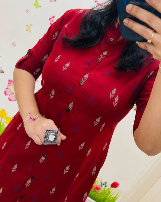 Pure Cotton Anarkali Kurta Pant And Dupatta Set Red
