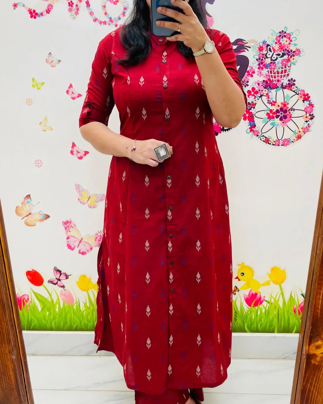 Pure Cotton New Printed Kurta Pant Set Red Dot