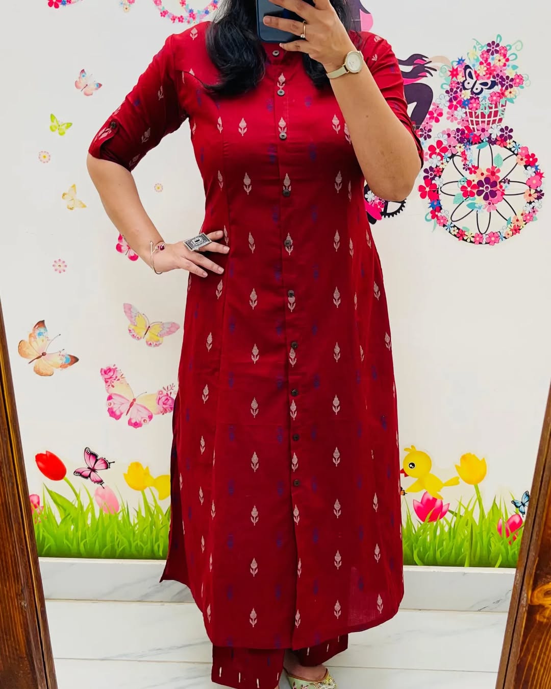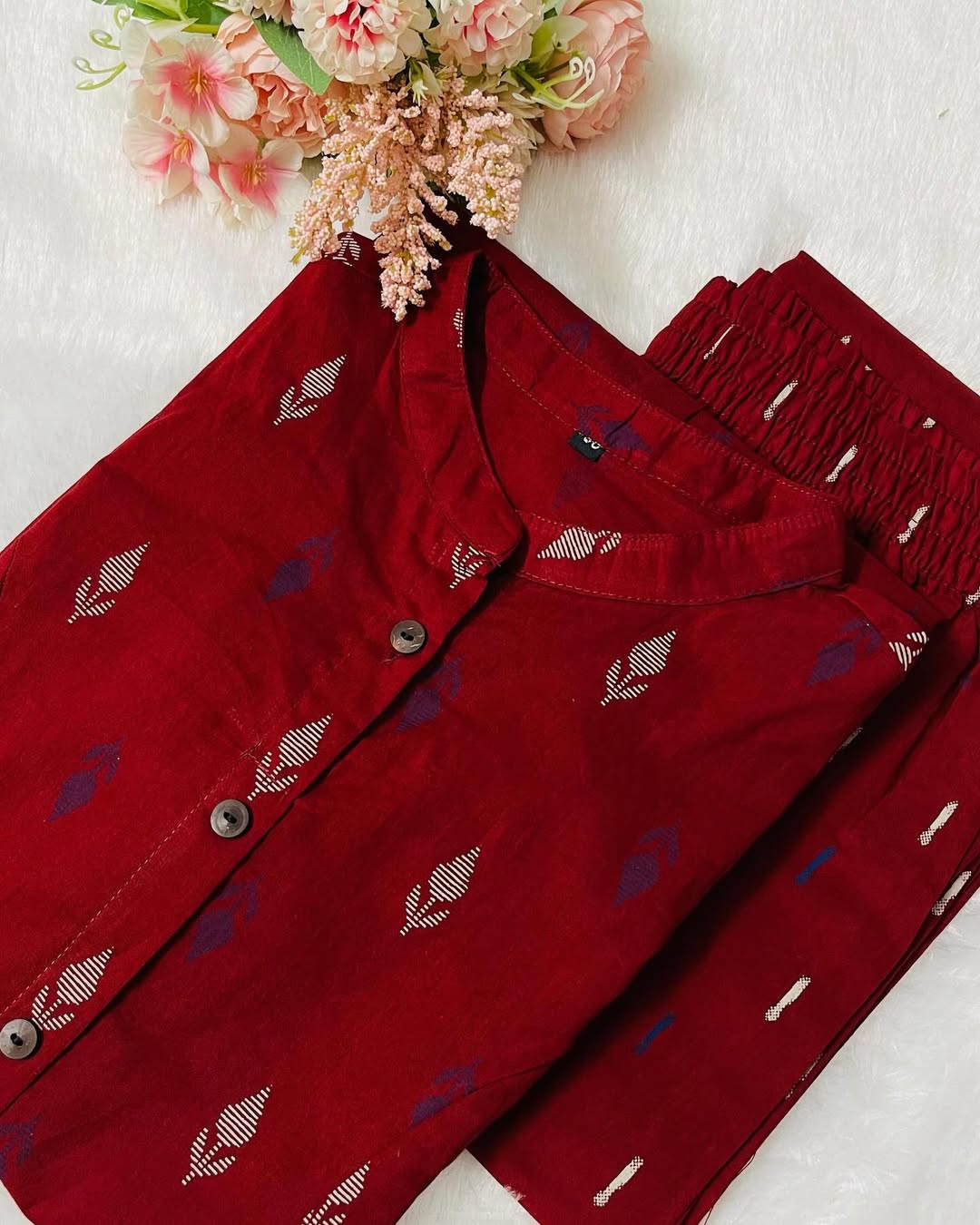 Premium Cotton Maroon Kurta Pant With Dupatta Set